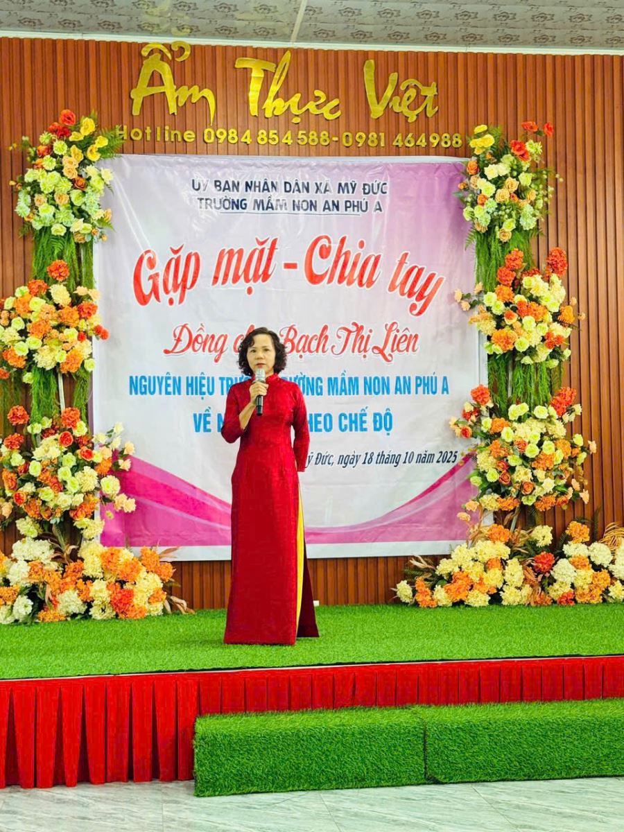 20/10/2025 A- A A+ | Gặp mặt chia tay cô Hiệu trưởng Bạch Thị Liên - Người thuyền trưởng tận tâm Loi video.docx Xem Chia s? Sáng ngày 18 tháng 10 năm 2025, Trường Mầm non An Phú A đã tổ chức buổi gặp mặt chia tay cô Hiệu trưởng Bạch Thị Liên – người thầy, người chị, người đồng nghiệp đáng kính sau nhiều năm gắn bó, cống hiến hết mình cho sự nghiệp giáo dục và cho ngôi trường thân yêu này. Buổi gặp mặt diễn ra trong không khí ấm áp, xúc động và tràn đầy yêu thương. Toàn thể cán bộ, giáo viên, nhân viên, đại diện lãnh đạo địa phương cùng Ban đại diện cha mẹ học sinh đã cùng nhau gửi đến cô những lời tri ân sâu sắc, tình cảm chân thành nhất. Trong suốt hơn 30 năm thời gian công tác, cô Bạch Thị Liên đã để lại dấu ấn đậm nét với tinh thần tận tụy, trách nhiệm và trái tim yêu nghề mến trẻ. Dưới sự dẫn dắt của cô, tập thể Trường Mầm non An Phú A ngày càng phát triển vững mạnh, cơ sở vật chất khang trang, chất lượng chăm sóc – giáo dục trẻ ngày càng nâng cao, nhiều năm liền nhà trường đạt danh hiệu Tập thể Lao động xuất sắc. Những lời chia sẻ, những cái ôm, những ánh mắt nghẹn ngào trong buổi chia tay hôm nay không chỉ là lời tạm biệt mà còn là sự tri ân, sự trân quý đối với người thuyền trưởng đã chèo lái con thuyền An Phú A qua bao mùa bão giông và nắng đẹp. Kính chúc cô Bạch Thị Liên luôn mạnh khỏe, hạnh phúc, tiếp tục giữ mãi ngọn lửa nhiệt huyết, niềm vui và lòng yêu nghề – như một nguồn cảm hứng cho các thế hệ mầm non An Phú A hôm nay và mai sau. ✨ Một lần nữa, xin tri ân và chúc cô luôn bình an trên chặng đường mới! Tập thể CBGVNV nhà trường Đồng chí Đinh Công Võ- Phó trưởng phòng VHXH xã Mỹ Đức tăng hoa cô 3 khối nhà trường- MN APB - Tiểu học An Phú- THCS An Phú tặng hoa cô. Chi bộ nhà trường tặng hoa Tập thể nhà trường tặng cô bức tranh kỷ niệm Tổ văn phòng có món quà nhỏ tặng cô Giáo viên tầng 2 Tập thể GV tầng 1, Nhà trẻ , cô nuôi Tập thể khu Thanh Hà Cô Bạch Thị Liên phát biểu Cô Bạch Thị Liên có món quà tặng nhà trường và một số hình ảnh kỷ niệm Tập tin đính kèm Tải về