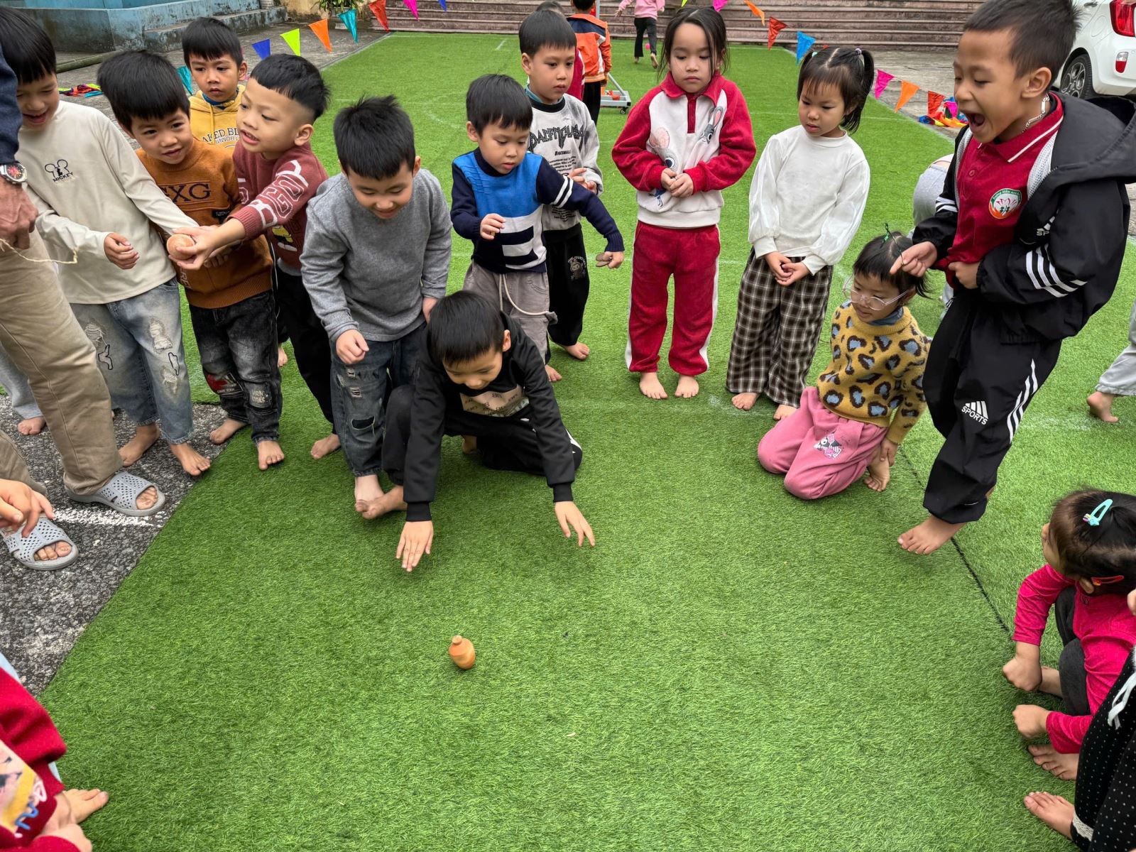 29/01/2026 A- A A+ | Trường mầm non An Phú A trong Công tác bảo tồn, gìn giữ di sản văn hóa phí vật thể trò chơi dân gian Xem Chia s? - Căn cứ Luật Di sản văn hóa và các văn bản hướng dẫn thi hành; - Căn cứ công văn số 42/VHXH ngày 21/01/2026 của phòng VHXH xã Mỹ Đức về việc phối hợp trong công tác bảo tồn, gìn giữ di sản văn hóa phi vật thể trò chơi ném còn, đánh mảng. - Căn cứ nhiệm vụ giáo dục mầm non gắn với bảo tồn, phát huy giá trị văn hóa truyền thống địa phương; - Căn cứ kế hoạch số 07/KH-TrMN ngày 23/01/2026 của trường mầm non AN Phú A về việc phối hợp trong công tác bảo tồn, gìn giữ di sản văn hóa phi vật thể trò chơi dân gian ném còn, đánh mảng. Nhà trường đã tích cực triển khai các hoạt động chuẩn bị nhằm phối hợp bảo tồn, giữ gìn và phát huy giá trị di sản văn hóa phi vật thể thông qua các trò chơi dân gian trong môi trường giáo dục mầm non. Với tinh thần trách nhiệm, sự đồng thuận và phối hợp chặt chẽ của tập thể cán bộ, giáo viên, nhân viên, các hoạt động chuẩn bị được thực hiện nghiêm túc, chu đáo, góp phần đưa các giá trị văn hóa truyền thống đến gần hơn với trẻ mầm non, tạo môi trường giáo dục giàu bản sắc, an toàn và ý nghĩa. 🌱 Qua đó, giúp trẻ được trải nghiệm, học mà chơi – chơi mà học, hình thành tình yêu quê hương, trân trọng các giá trị văn hóa dân tộc ngay từ những năm đầu đời. Hình ảnh trò chơi ném còn Hình ảnh trò chơi nhảy sạp Hình ảnh trò chơi đi cà kheo Trở về tuổi thơ trò chơi đánh cù Tập tin đính kèm Tải về