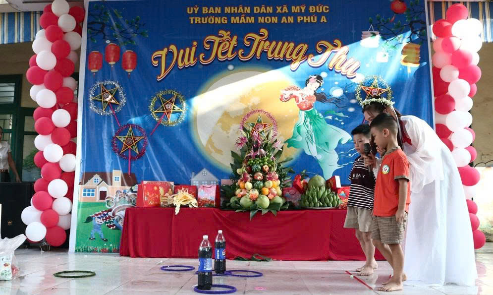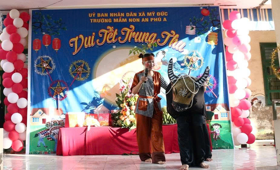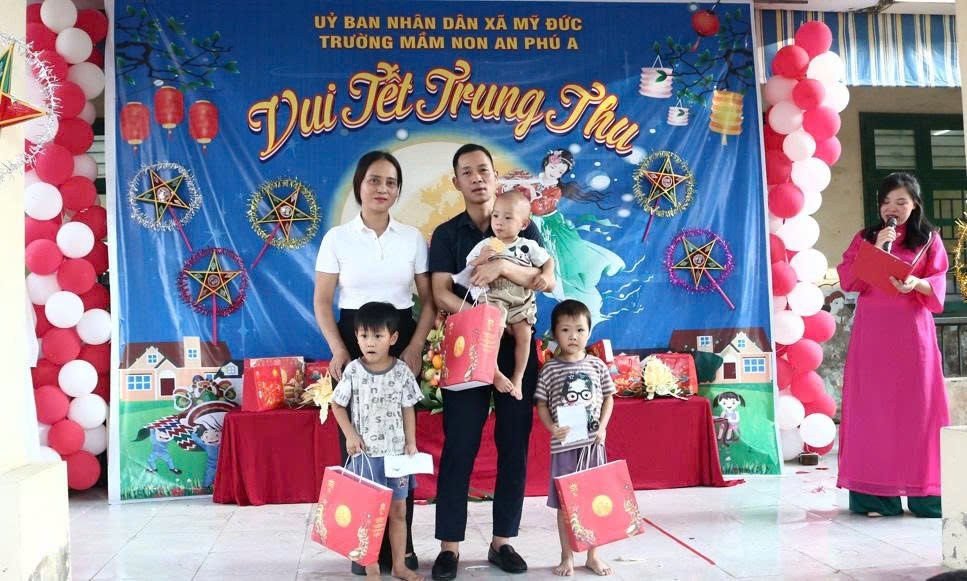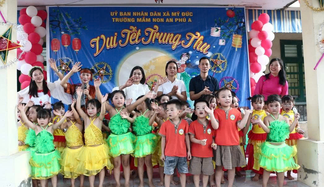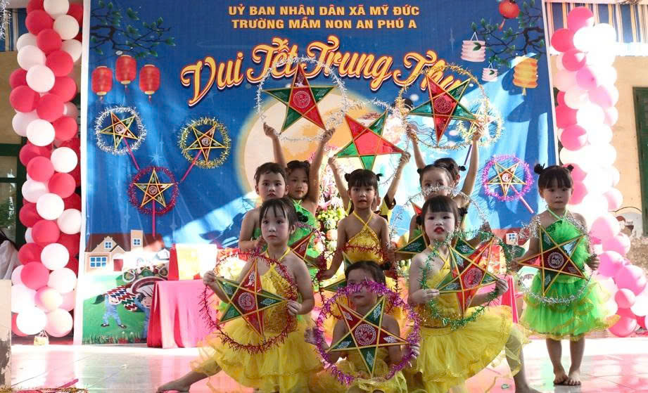 08/10/2025 A- A A+ | VUI TẾT TRUNG THU 2025 Kich_ban_MC_Trung_thu.docx Xem Chia s? Chiều 3/10/2025, trường Mầm non An Phú A (xã Mỹ Đức) đã tổ chức chương trình “Vui Tết Trung thu” năm 2025 cho học sinh. Đồng chí Trần Thị Uyên - Phó hiệu trưởng nhà trường Phát biểu chúc mừng ngày tết Trung Thu Đến dự và chung vui với các cháu có các đồng chí trong Ban Chấp hành Đoàn xã Mỹ Đức, cùng đông đảo phụ huynh học sinh. Trong ngày hội, cô và trò nhà trường đã mang đến nhiều tiết mục văn nghệ đặc sắc như: Rước đèn ông sao, Múa “Tôm cá thi tài”, “Treo đèn đón trăng” Hoạt cảnh Chú Cuội – Chị Hằng, múa lân và nhiều trò chơi dân gian, tạo bầu không khí rộn ràng, vui tươi cho các em nhỏ. Nhân dịp này, Hội Cha mẹ học sinh của trường mầm non An Phú A đã trao 4 xuất quà cho các em có hoàn cảnh khó khăn, mỗi xuất gồm quà và tiền mặt , góp phần mang đến cho các em niềm vui và sự ấm áp trong ngày Tết Trung thu. Lên trao quà có Ông Cao Quý Ba - Hội trưởng hội CMHS và Bà Hoàng Thị Kim Ngân - PHT - Phụ trách nhà trường. Khép lại chương trình Trung tThu đầy ý nghĩ với những lời ca của bài hát Chiếc đèn ông sao và các phần quà cho các em học sinh. Tập tin đính kèm Tải về